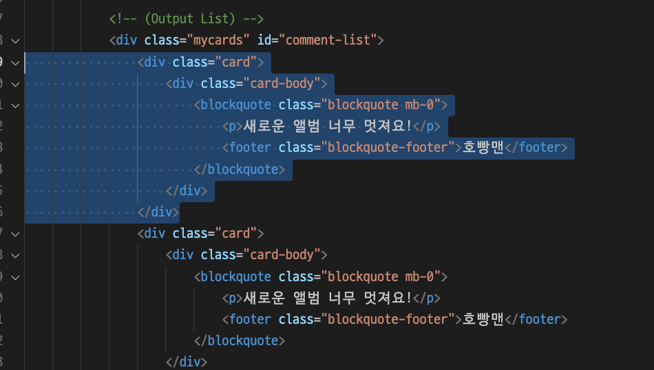 // 위 temp_html을 index.html의 #comment-list div에 붙여주기.