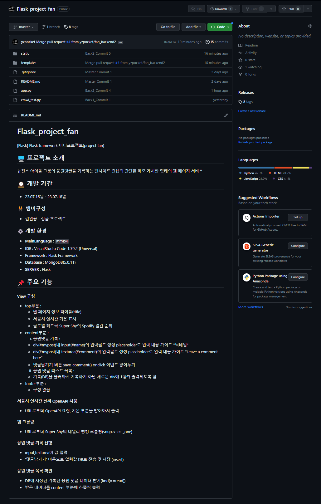 [Flask] Flask framework 미니프로젝트(project fan) 11 (프로젝트 완료 및 형상, 버전관리)