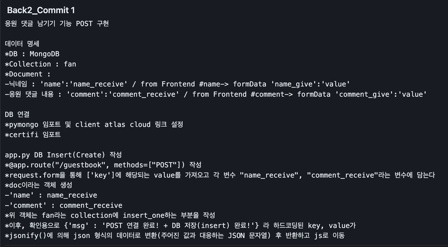 v0.2.1 POST 응원 댓글 기록하기 기능 구현 완료