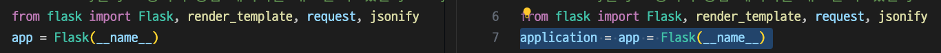 좌측은 app.py 원본이며, application.py도 단순 이름만 변경되고 카피된 상태기 때문에 동일한 코드일 것이다.