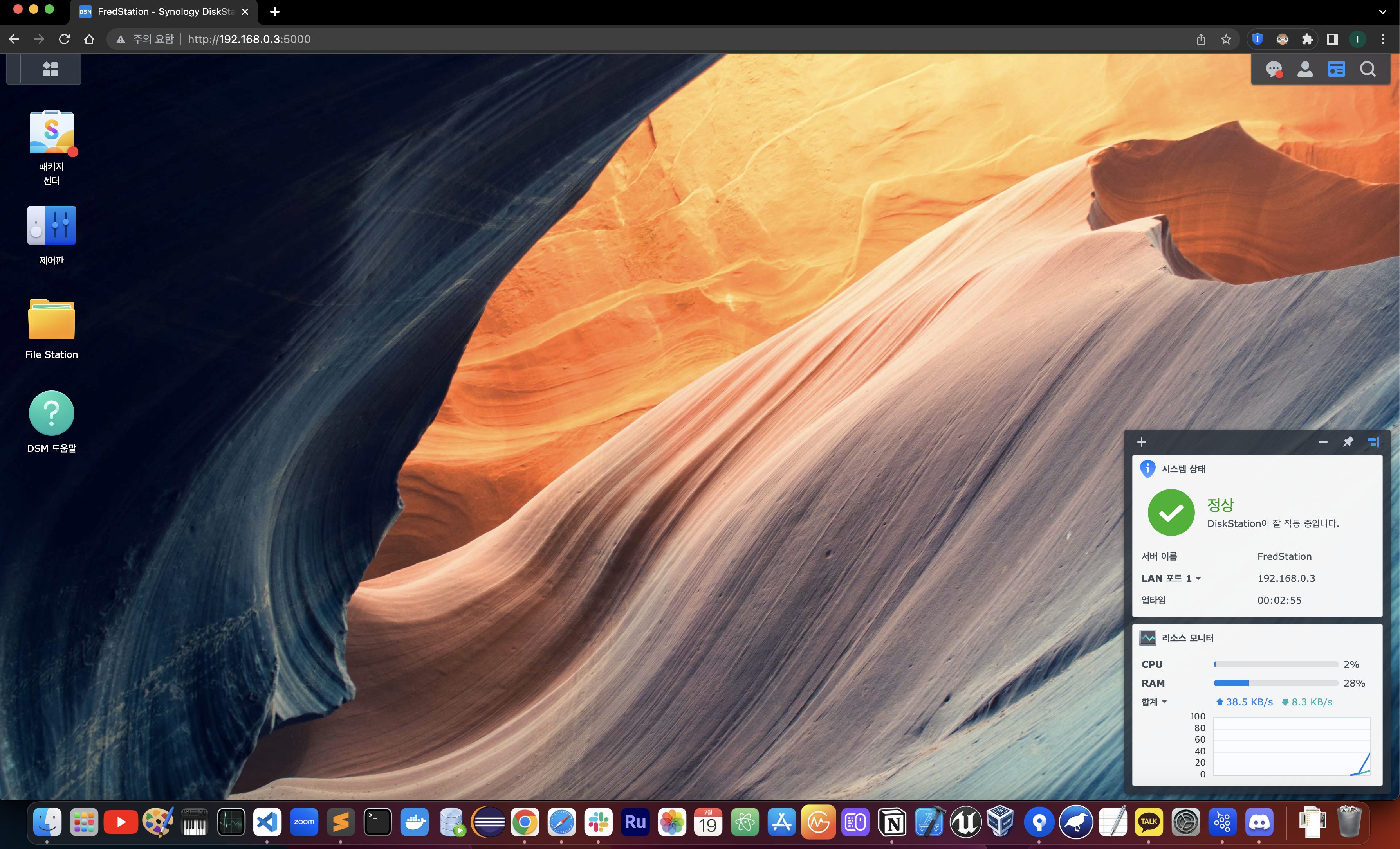 나의 로컬 컴퓨터에서 웹 브라우저로 서버 컴퓨터의 DSM에 접속한 화면이다.