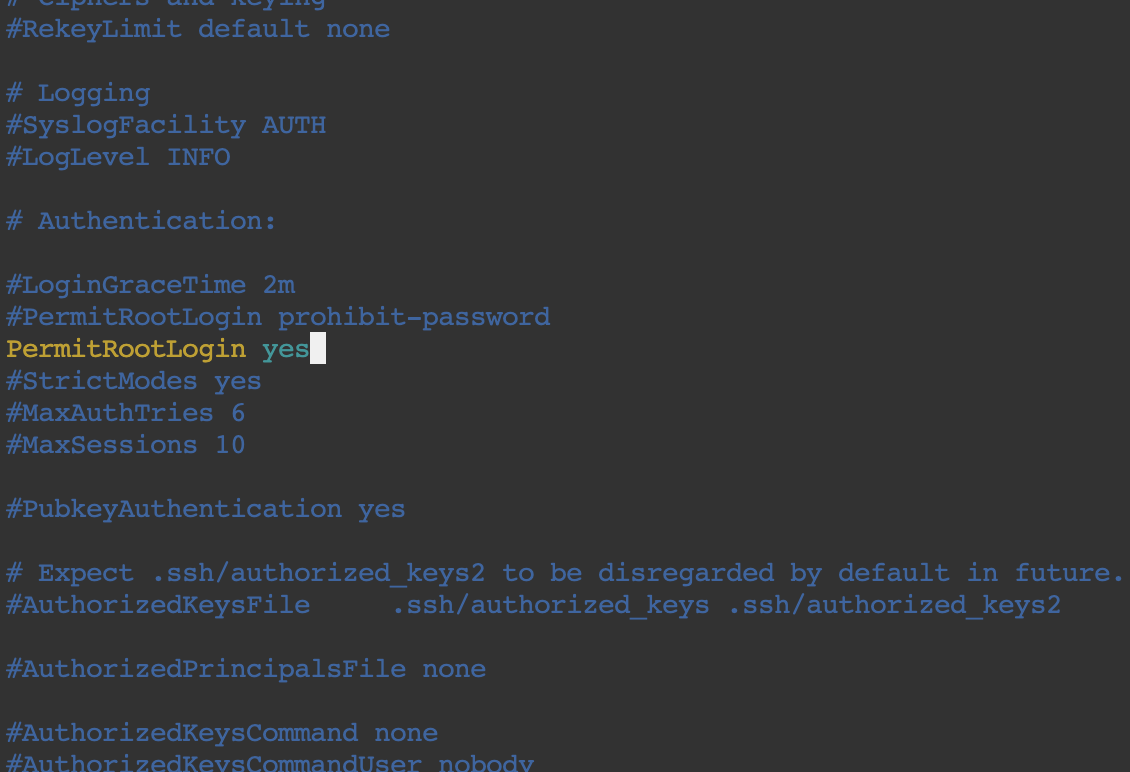PermitRootLogin - YES확인 없으면 YES로 추가
