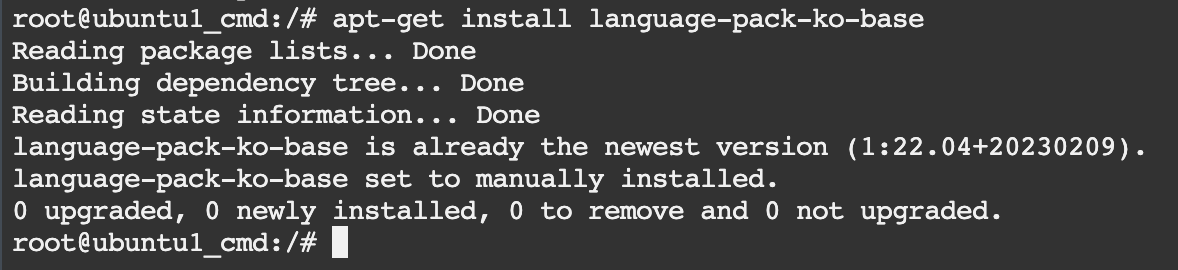 한글팩 설정완료 해당 Docker-ubuntu(Bash) 터미널 재실행