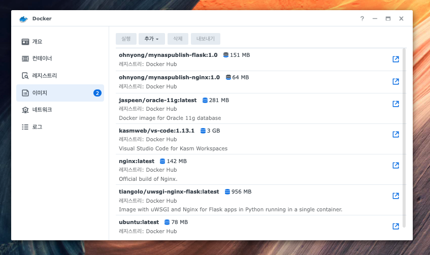 해당 이미지를 NAS Docker내로 다운받는다.