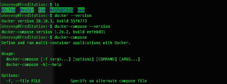 7. 다시 한번 docker-compose를 NAS에서 설치해보자.