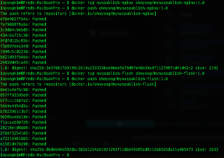 dockhub와 연결되려면 <username>/naspublish-flask 처럼 username/이 앞에 붙어야 한다.