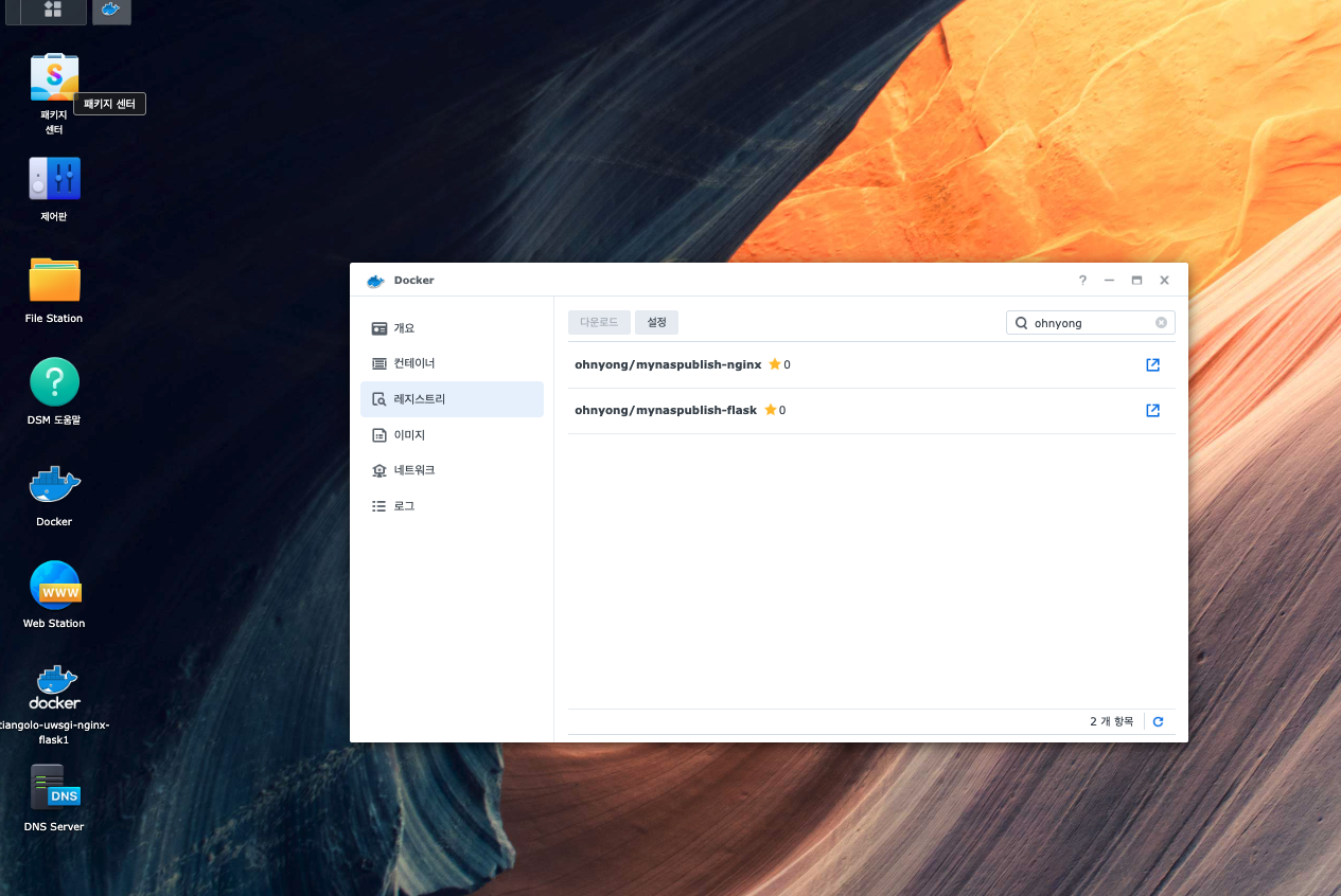 Public으로 올렸기 때문에 나도 다른 개발자들 프로그램처럼 NAS의 Docker에서 user이름가지고 내가 올려둔 image를 확인 할 수 있었다.