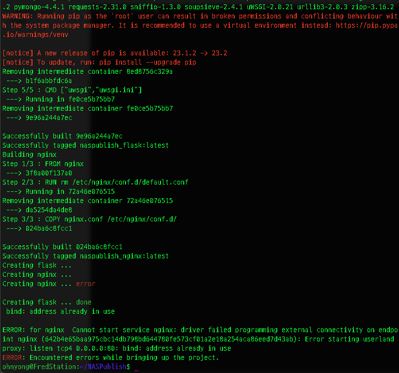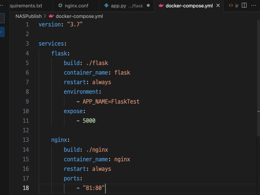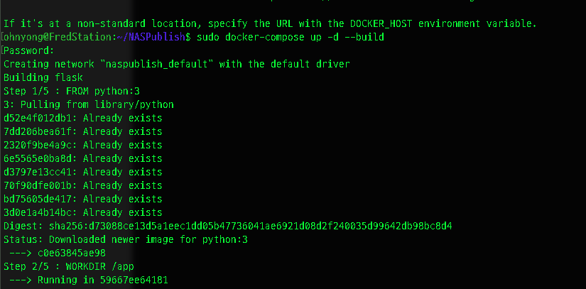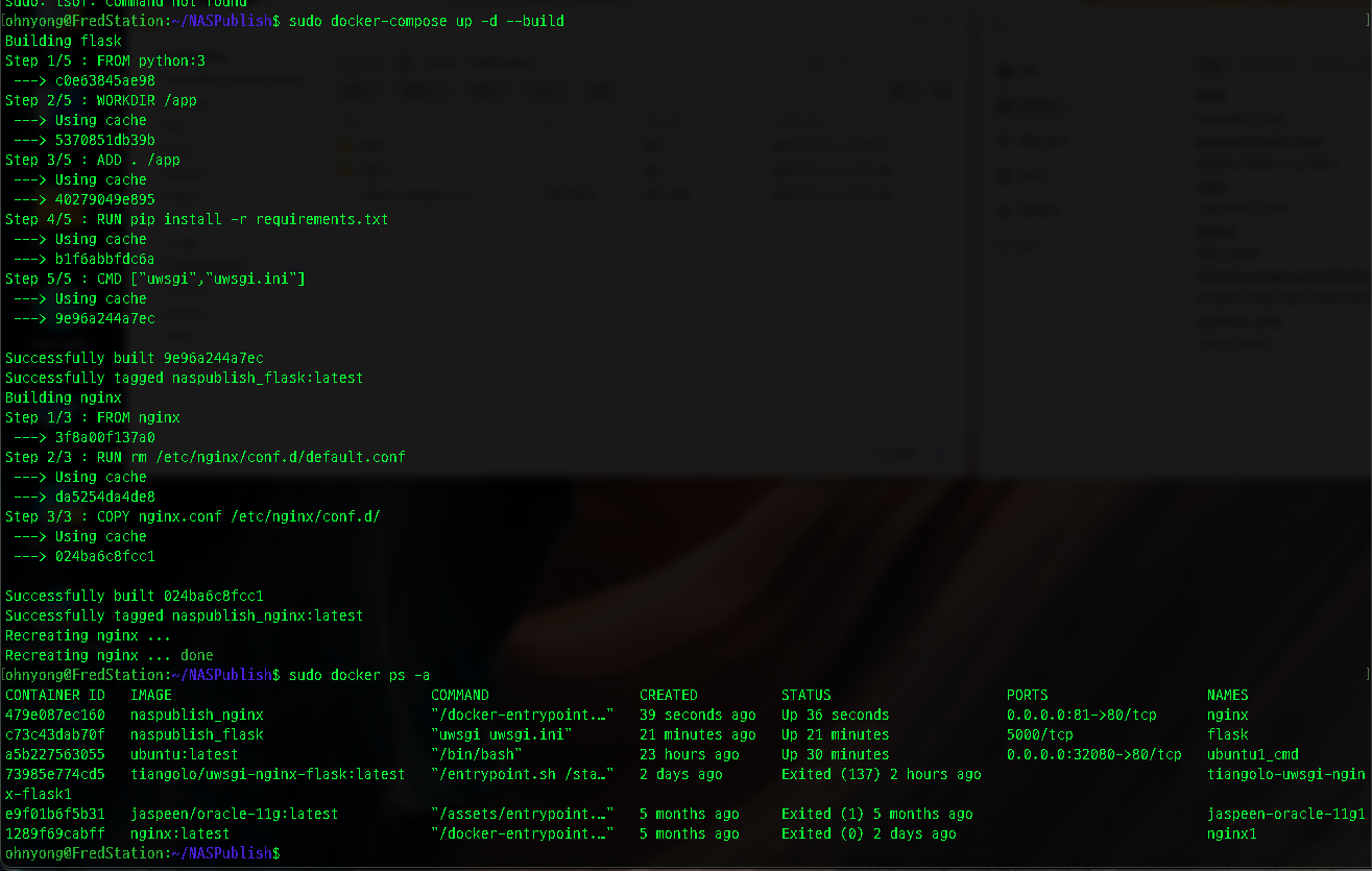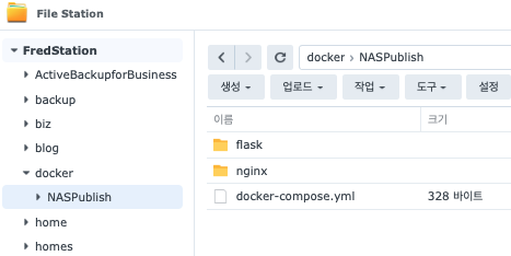현재 naspublish-flask, naspublish-nginx처럼 표기되어 있으나