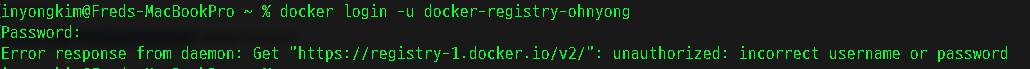- user name과 docker hub 에 로그인된 ID가 일치하지 않을 경우