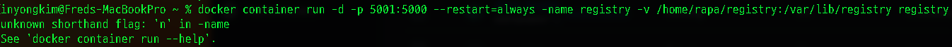 docker container run -d -p 5001:5000 --restart=always -name registry -v /home/rapa/registry:/var/lib/registry registry