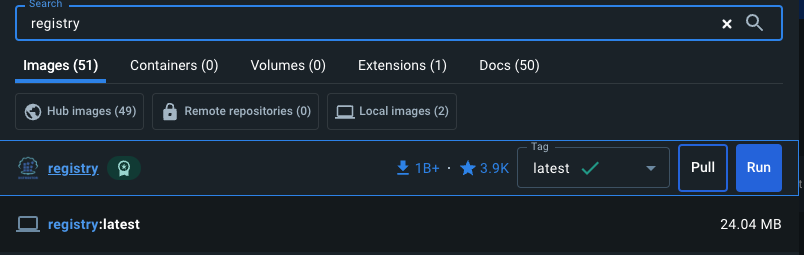 - local registry : 사용자만 사용한다. 컨테이너 생성시 1차적으로 local registry를 검색한다(내 PC에 docker 앱, 패키지가 직접 설치한 그 공간이다.)