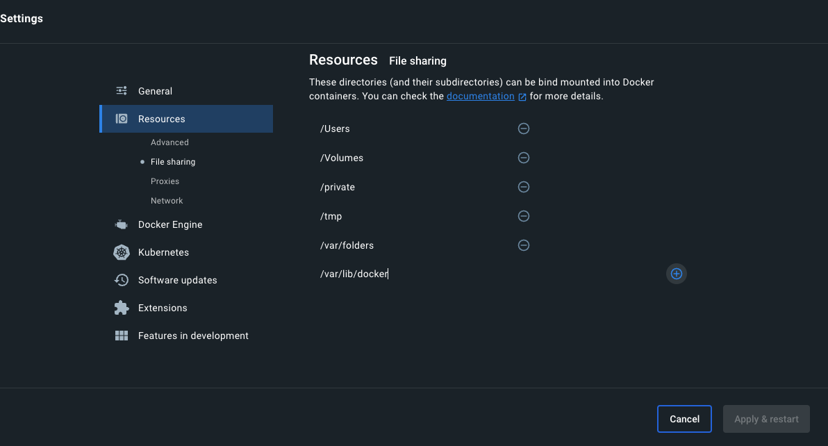 - Windows: C:\ProgramData\DockerDesktop, C:\Program Files\Docker\Docker