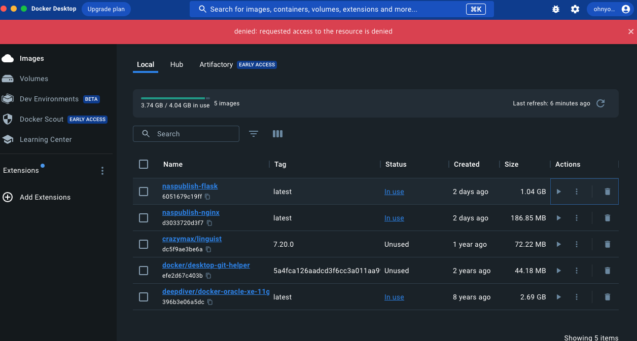 2. Docker를 통해서 이미지 Push를 진행했지만 denied: requested access to the resource is denied 에러가 발생했다.