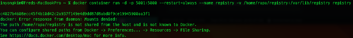 registry 구축해보기 5001포트로 변경(Mac 포트충돌)