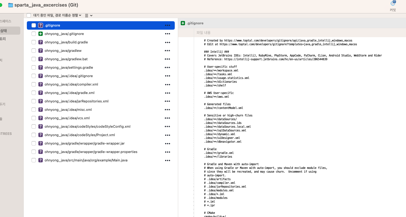 - 특히 gradle, idea 폴더들이 눈에띄는데 이번에는 이것들이 무조건 필요한지, 보통 어떤 것들을 gitignore에 등록해야 하는지 다른 프로젝트를 진행한 사람들의 gitignore를 검색해본다.