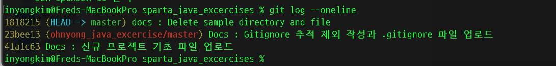log 한줄보기 옵션으로도 정상적으로 나타난다.