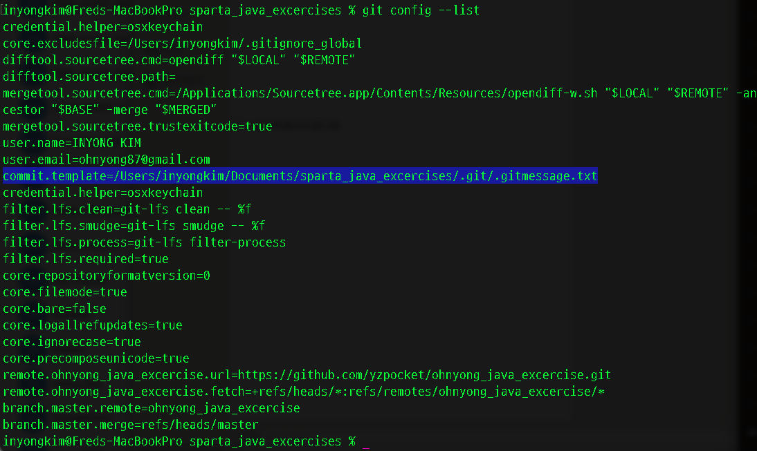 아래와 같이 template로 설정한 파일이 commit.template에 경로가 등록되었다.