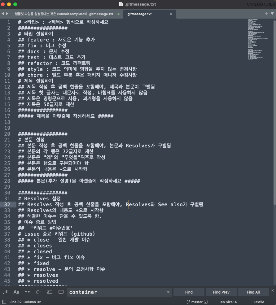 2. Commit Message template 설정