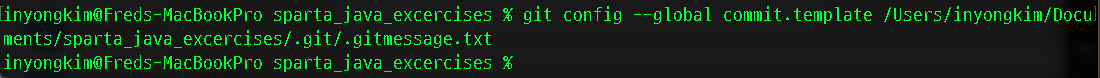 template 파일을 설정한다는 것은 commit.template에 .gitmessage.txt 파일을 등록한다는 의미다. <경로>부분에 .gitmessage.txt가 위치한 경로를 적어준다.(생성위치일 것이다.) 우선 내 작업 PC범위인 --global 범위까지만 적용하기로 했다. 이러면 내 PC에서 생성하는 Repository들은 해당 설정이 적용된다. --local은 해당 Repository만 적용한다는 내용이니 나중에 변경이 필요하면 --local로 적용해야겠다.