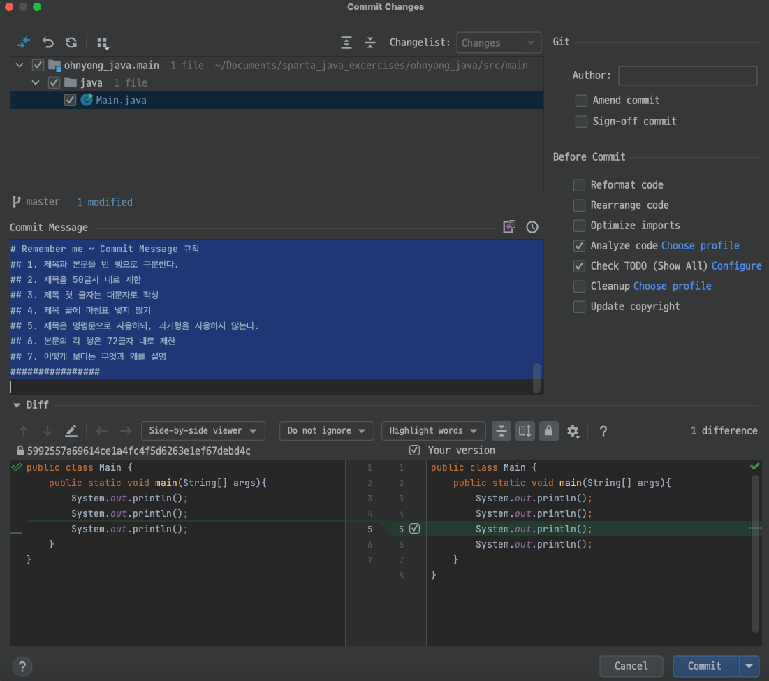 [Git] 기초문법 - Commit Template 설정해보기 및 IntelliJ에서 Git commit template Plugin 사용하기 - 02