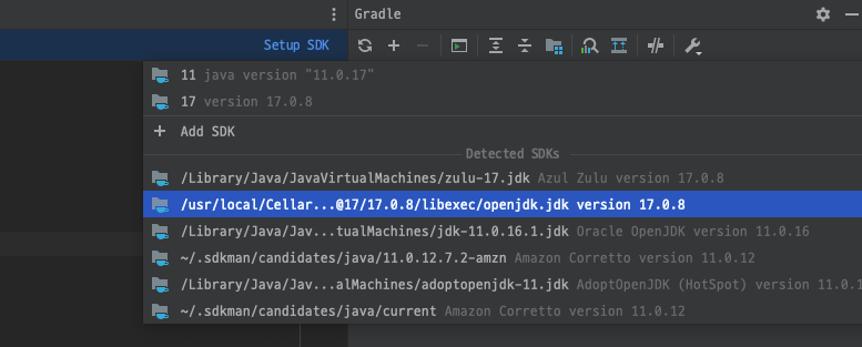 예전에 설정해둔 path가 적용되어 있어서 JDK 17경로로 변경해주어야 한다.