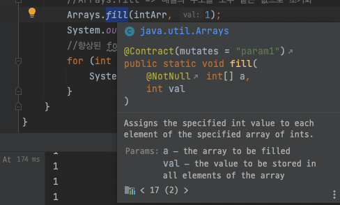 "Java에는 Arrays라는 배열을 다룰 수 있는 클래스가 있다. 이안에서 fill이라는 메서드가 있다.