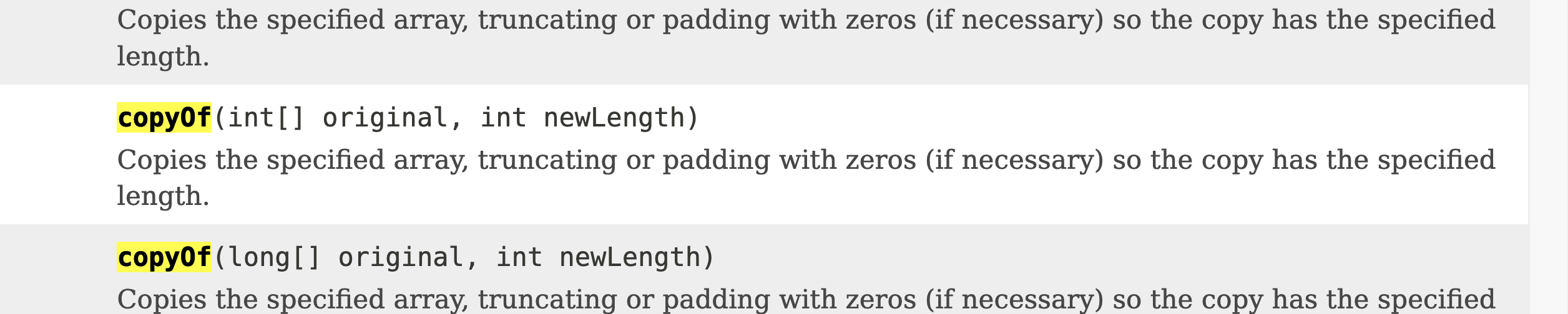 그 외 Arrays 클래스의 메서드 기능을 이용하려면 공식 문서에서 찾을 수 있다.