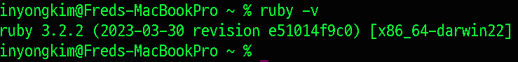위 4번 과정에서 오류를 해결한 뒤 ruby 버전을 다시확인합니다.