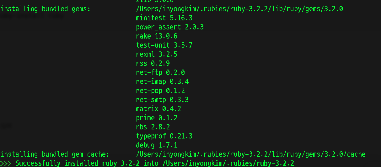 하단의 Successfully installed ruby 3.2.2 into /.../...