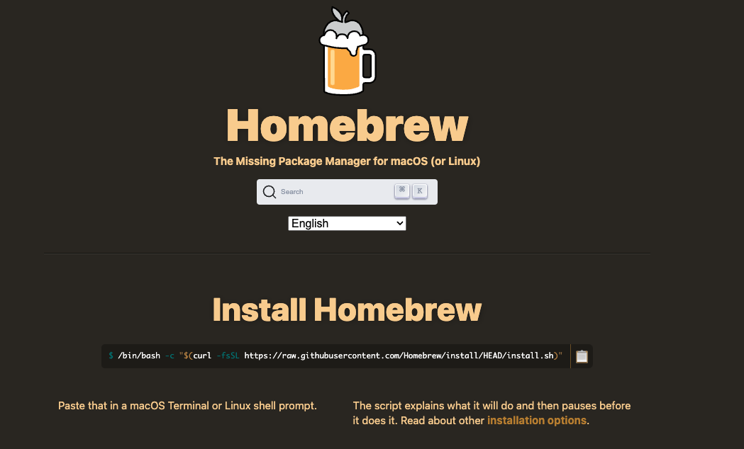 MacOS 용 패키지 관리자 Homebrew부터 설치해야 한다.