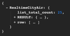 'RealtimeCityAir' 라는 key에 { ..., ..., ... } 형태로