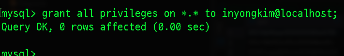 grant all privileges on *.* to '사용자'@'localhost' identified by '비밀번호';
