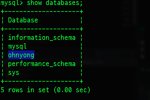 use ohnyong; // ohnyong database 선택