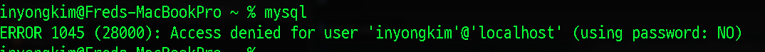 11. 사용자 계정 하나를 만들어준다. root 계정은 슈퍼계정이라 버겁기도 하지만 일단 Mac 사용자 커맨드를 바로 입력해도 접근 할 수 있도록 해주는게 편하다. 아래처럼 환경변수는 인식하지만, 내 계정을 읽어내지못한다. 계정이 root말곤 없으니까.