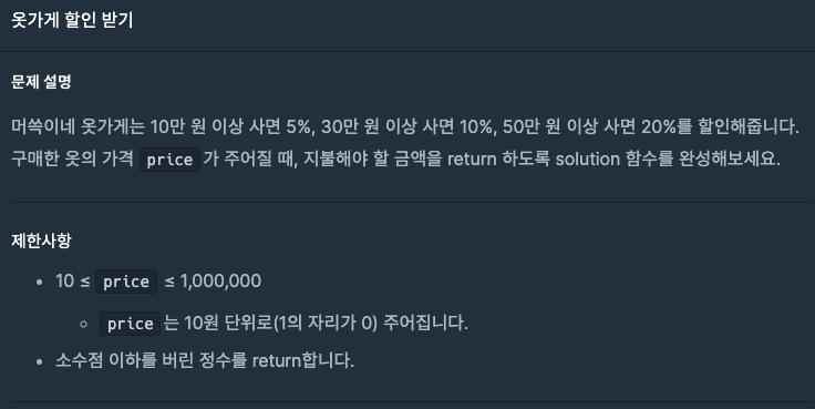 [Algorithm] 옷가게 할인 적용 계산기 만들기 본문
