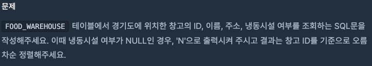 문제 안에서 "이때 냉동시설 여부가 NULL인 경우, 'N'으로 출력시켜 주시고" 이 부분을 이렇게 표현 할 수 있다.
