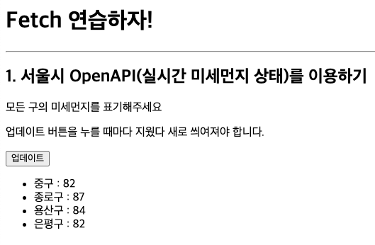 <title>미세먼지 API로Fetch 연습하고 가기!</title>