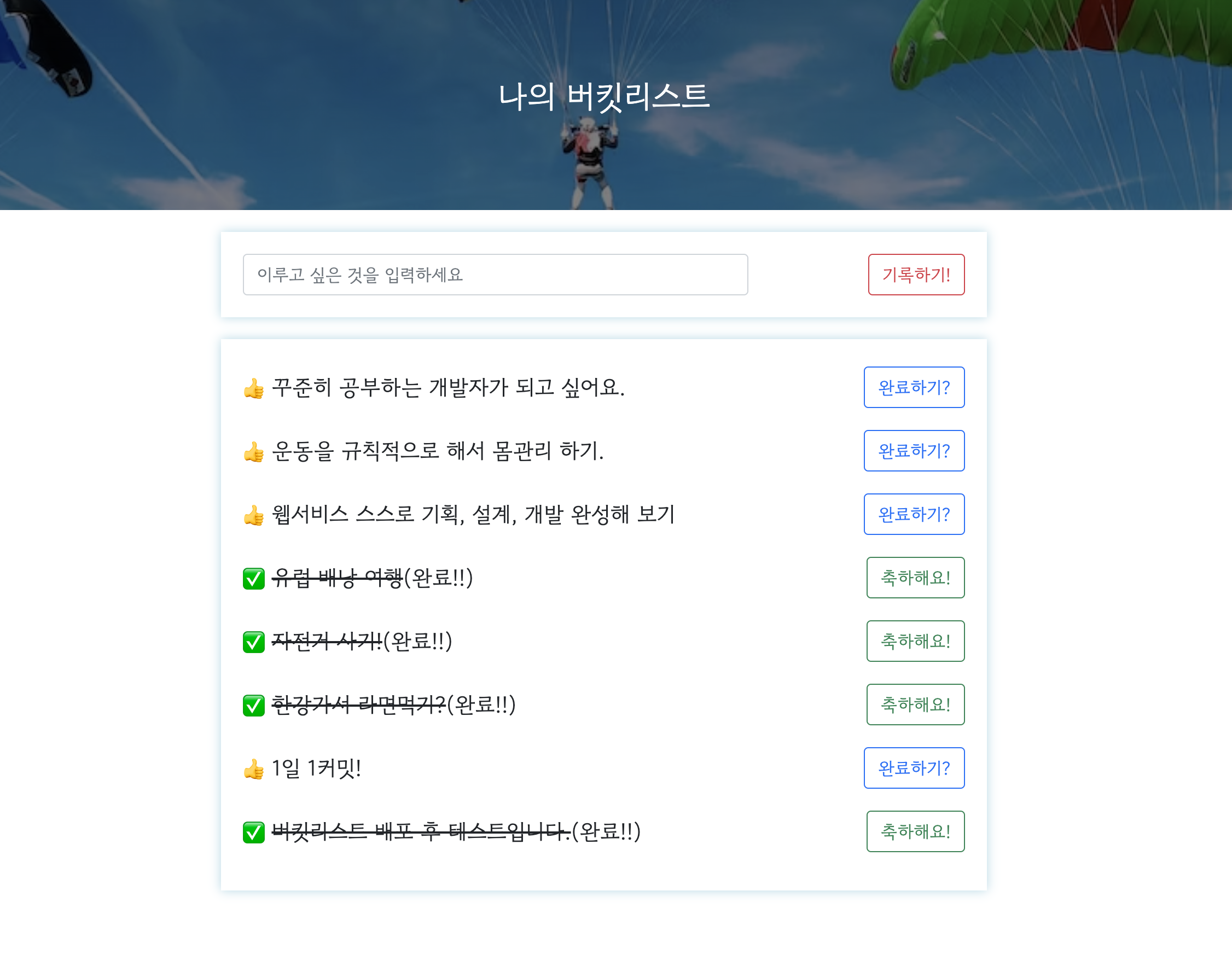 insert로 등록된, read로 메인 페이지에서 보여지는 버킷 리스트 목록을 "버킷 리스트를 완료" 했다면 완료한 것으로 변경해서 보여주고싶었다.