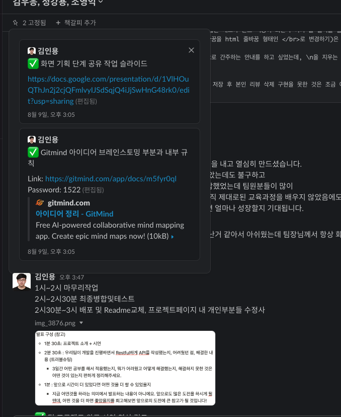 발표 또한 너무 많은 양을 설명하려했다. 발표를 끝내고 아차싶었다. 발표는 무엇 했는지 선보이는 것 보다 어떤 문제들을 만났고, 트러블슈팅 과정을 설명하는 것을 많은 분량을 넣었어야 했다. 기능은 거기서 거기일거다. 나는 출제자의 의도를 또 파악하지 못했고, 그저 사업계획서를 발표하는 것 처럼 기능을 팔려고 설명하고 있었다. 지금은 만났던 위와 같은 어려운점들에 대해서 부족했던것, 아쉬웠던것, 해결했던것, 해결하는 과정 등을 발표했어야 맞았다. 다음 발표들은 이런 부분들을 생각해서 분량을 조절하고 해야겠다. 사실 4시 발표인데 3시 30분에 끝났고 발표에 대한 준비가 미흡했던 점도, 내가 일정관리에 미흡했던 것이고, 트러블 슈팅을 너무 오래했던 문제가 있다. 또한 CSS를 간략하게 테마를 사용했어야 했는데 잘 알지도 못하는 프론트단을 오래 건들였던 것이 내 스케쥴을 망가트린것 같다. 다음부턴 이런 문제들이 발생 할 수 있으니 계획 부분에서부터 생각해야겠다.