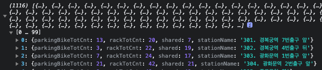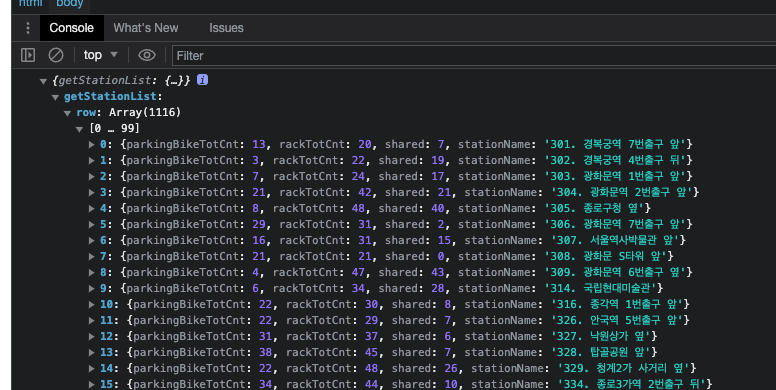 getStationList의 row 안에 실제 활용한 데이터가 나열되는 것을 확인 할 수 있다.