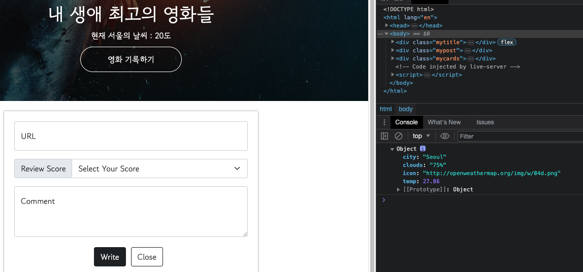 3. 데이터가 들어오는 것을 확인했으면 HTML에 기록되도록 해보자