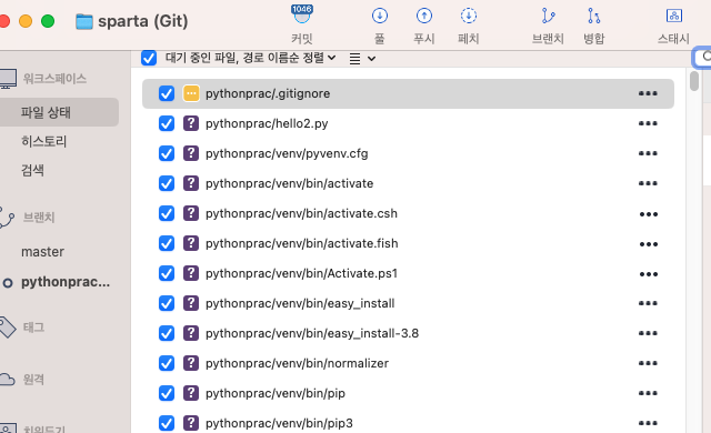 venv라는 폴더가 생성되는데 1,000개 이상의 신규 파일이 추가된다. 하지만