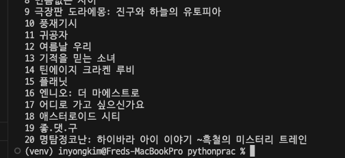 영화 예매 순위 사이트에서 제목 가져오기 크롤링 연습 완료