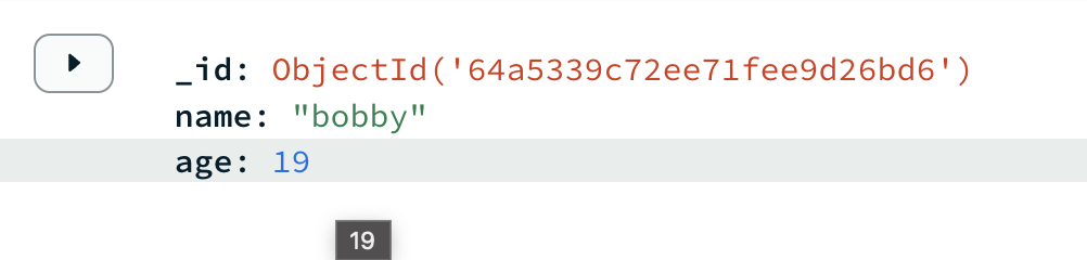 name이 bobby인 document의 age field value를 19로 변경한다.