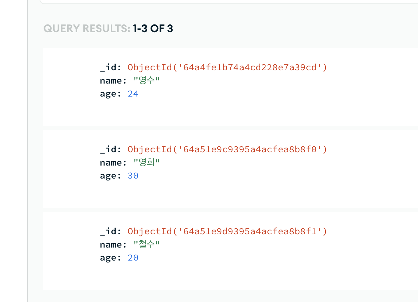 다음처럼 _id가 자동으로 부여되는데 이것을 감추기 위해서는