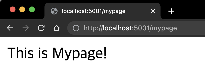 localhost:5001/mypage 에도 접근 할 수 있는 것을 확인 할 수 있다.