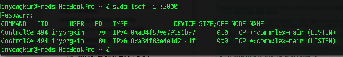 sudo lsof -i :5000
