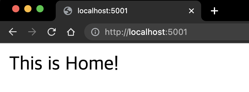 실제로 브라우저에 localhost:5001로 접속하면 메인 페이지를 접속 할 수 있다.