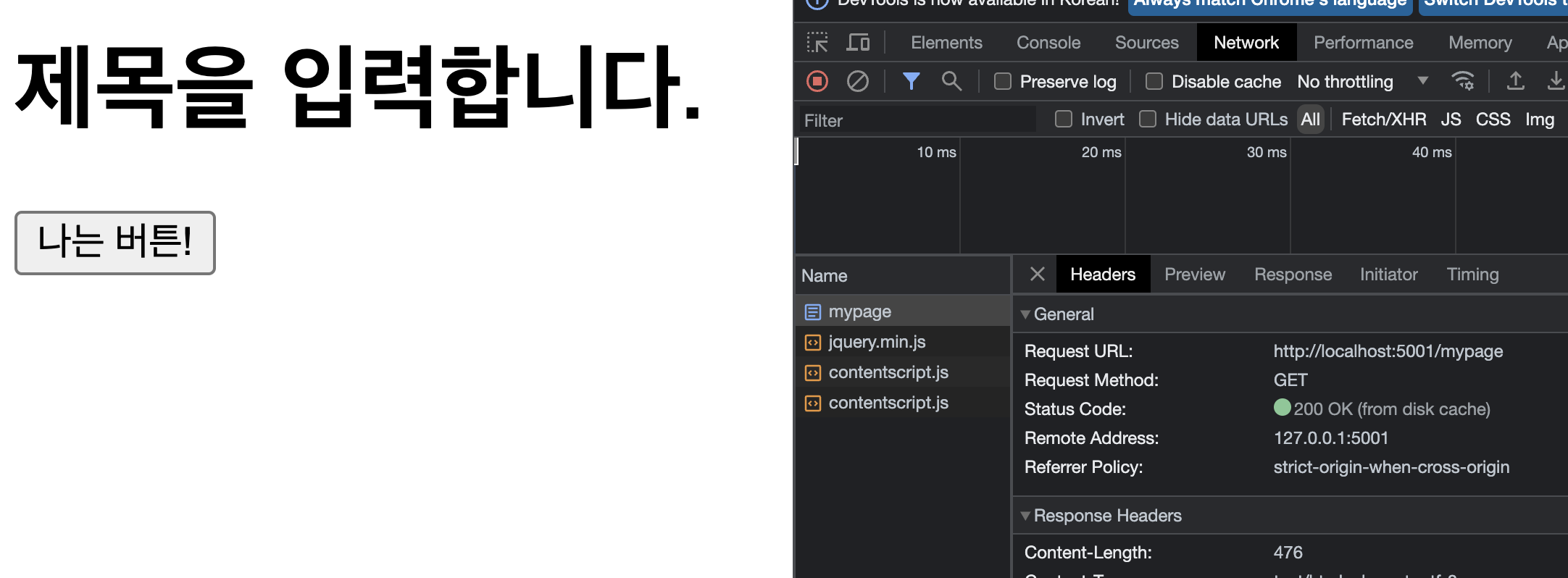 localhost:5001/mypage 요청에 mypage()가 실행