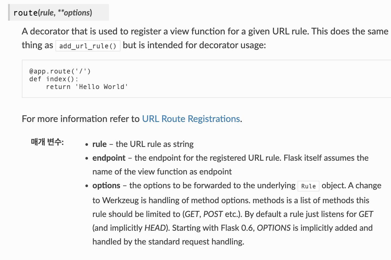 route()는 add_url_rule()과 동일하게 작동한다고 한다.